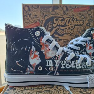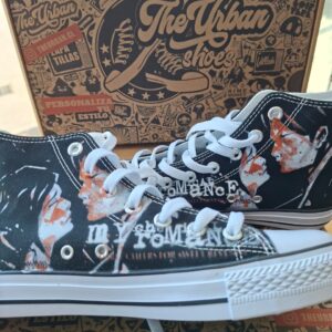 Zapatillas color Negras Personalizadas, con diseño de Iron Maiden.